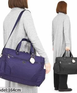 とにかく軽量なのがうれしいボストンバッグです。折りたたむことが出来るくらいの柔らかな素材で、かさばらないのもポイント!サブバッグ的に持つのもおすすめです。ショルダーベルト付属で、荷物が重くなっても安心。スーツケースにセットアップできる仕様も便利です。底鋲付き。