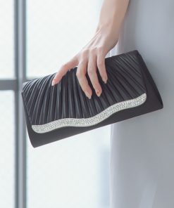 商品名:サテンプリーツラインストーンハンドバッグ
