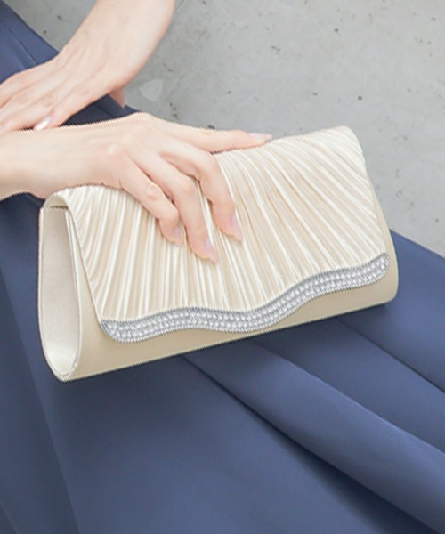 Retica クラッチバッグ パーティーバッグ サテンプリーツラインストーンハンドバッグ レディース